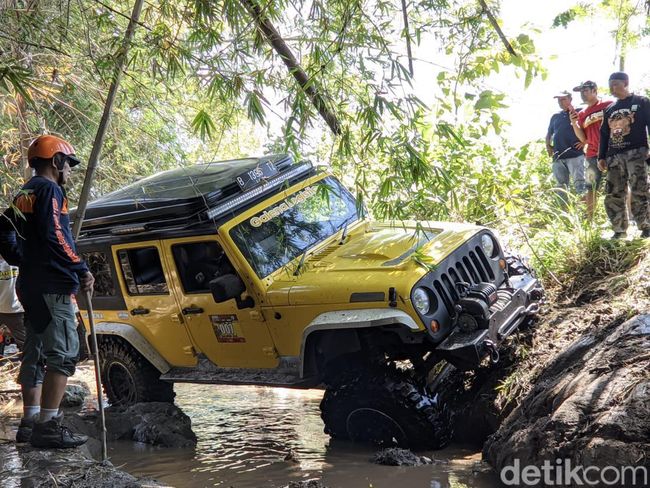 Peserta lain asal Solo, Edi beruntung bisa melewati tanjakan kemiringan 90 derajat dengan aman. Pakai mobil suzuki Jimny, Edi tampak santai saat melintasi rintangan itu saat keluar dari sungai.