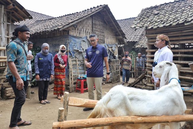 Menteri Pariwisata dan Ekonomi Kreatif (Menparekraf) Sandiaga Uno bertemu Efa (30), pegiat susu kambing etawa. Sandiaga mengatakan usaha mikro susu kambing etawa milik Efa ini berangkat dari niat baik untuk membantu tetangganya yang memiliki penyakit asma.