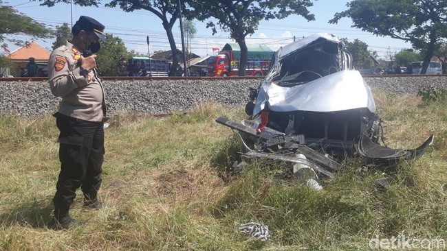 Akibat tertabrak KA, Avanza berwarna silver tersebut terlempar hingga 20 meter ke sisi utara rel. Kondisi kendaraan ringsek di bagian kiri.