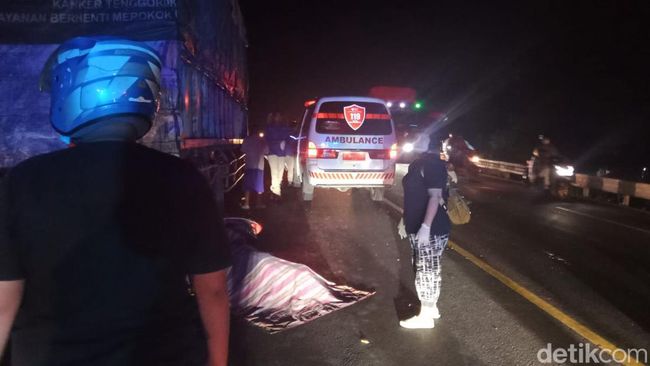 Pengendara sepeda motor menabrak truk mogok di jalan nasional Kabupaten Mojokerto. Akibatnya, pengemudi motor tewas seketika. Sedangkan dua penumpang yang salah satunya balita berusia 2 tahun, selamat.