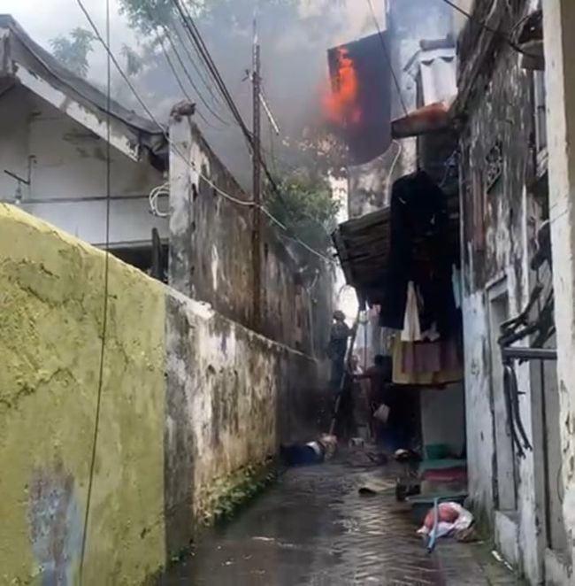 Pantauan detikJatim di lokasi, terlihat sejumlah warga panik. Karena lokasi kebakaran berada di sebuah gang perkampungan padat penduduk.