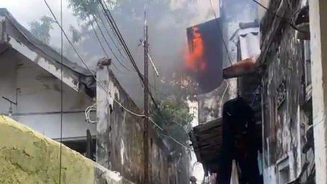 Kobaran api melalap sebuah rumah di Jalan Ngagel Timur V, Surabaya. Warga sekitar sempat panik karena lokasi kebakaran berada di sebuah gang perkampungan padat penduduk. Warga juga sempat mendengar suara ledakan.