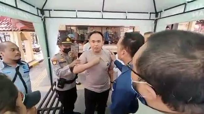 "Kejadian salah satu wartawan jatuh reflek menyenggol pantat (istri Kasat Lantas)," ujar Suryono saat dikonfirmasi detikJatim.