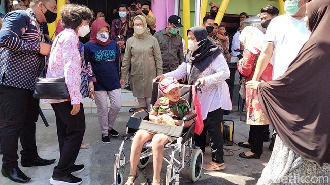 "Sama tetangga-tetangga datang ke Pasar Pucang barangkali bisa ketemu Pak Jokowi dan dapat bantuan untuk anak saya. Belum bisa jalan, belum bisa komunikasi berbicara belum bisa, umurnya 9 tahun belum sekolah," kata Lilik.