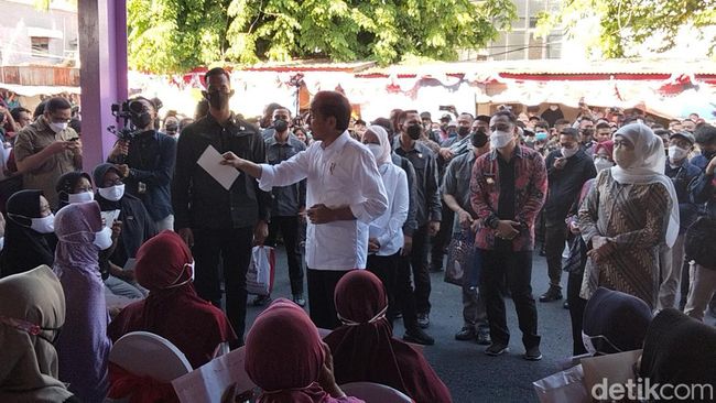 Jokowi juga menyempatkan berdialog dengan warga dan mengenalkan Gubernur Jawa Timur Khofifah dan Wali Kota Surabaya Eri Cahyadi yang turut mendampinginya.