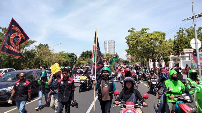 Ribuan driver ojek online (ojol) menggelar aksi di sejumlah titik di Surabaya. Rencananya, para ojol akan melakukan demo hingga terakhir berpusat di Gedung Negara Grahadi, Surabaya.