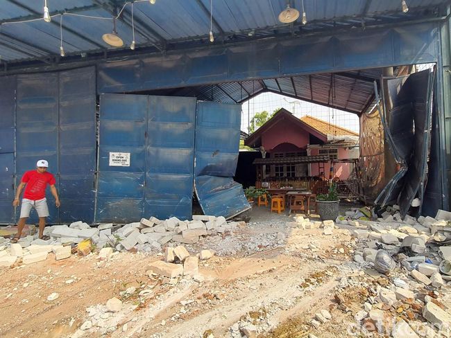 Tabrakan frontal truk muat ayam itu membuat ambruk sebagian pintu kafe. Terutama pagar sisi timur kafe yang ambruk total. Tak hanya itu ada 43 meter kubik bata ringan milik warga lain di dekat kafe itu yang sebagian besar hancur.