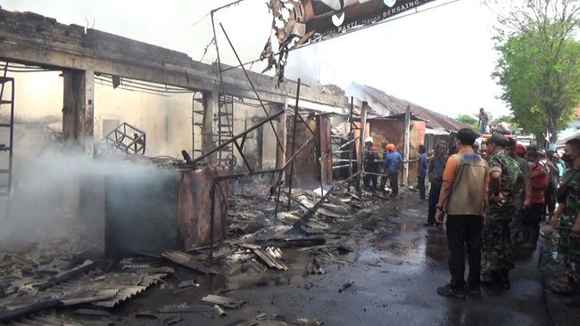 "Sekitar 15 kios yang terbakar. Kebanyakan kios menjual onderdil, barang-barang bekas onderdil yang terbakar. Yang kios menjual pakan ternak sebagian besar aman. Tapi mereka sempat menyelamatkan barang-barangnya," kata salah satu pemilik kios, Koinin (40) di lokasi.