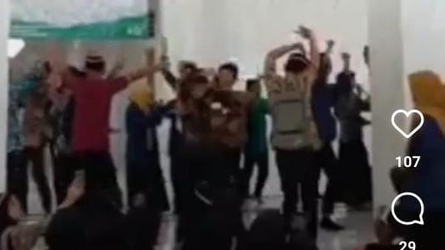 Viral video sekumpulan orang berjoget diduga di sebuah Masjid. Terlihat di dalam video berdurasi 18 detik sekumpulan orang itu seperti mahasiswa yang mengikuti kegiatan tertentu, diduga pengenalan kampus.