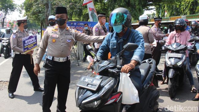 Mereka juga memberikan masker gratis kepada pengendara yang tidak memakainya. "Kali ini kami melaksanakan sedekah Jumat berkah yang kami kombinasikan dengan edukasi kepada masyarakat tentang Kamseltibcarlantas," kata Kasat Lantas Polres Jombang AKP Rudi Purwanto kepada wartawan di lokasi, Jumat (26/8/2022).