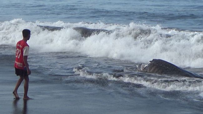 "Sekitar jam 12 malam hiu tutul terdampar dengan panjang sekitar 7 meter dan berat sekitar 1 ton. Saat ditemukan kondisinya sudah mati," ujar salah satu warga Desa Wotgalih, Imam kepada detikJatim.
