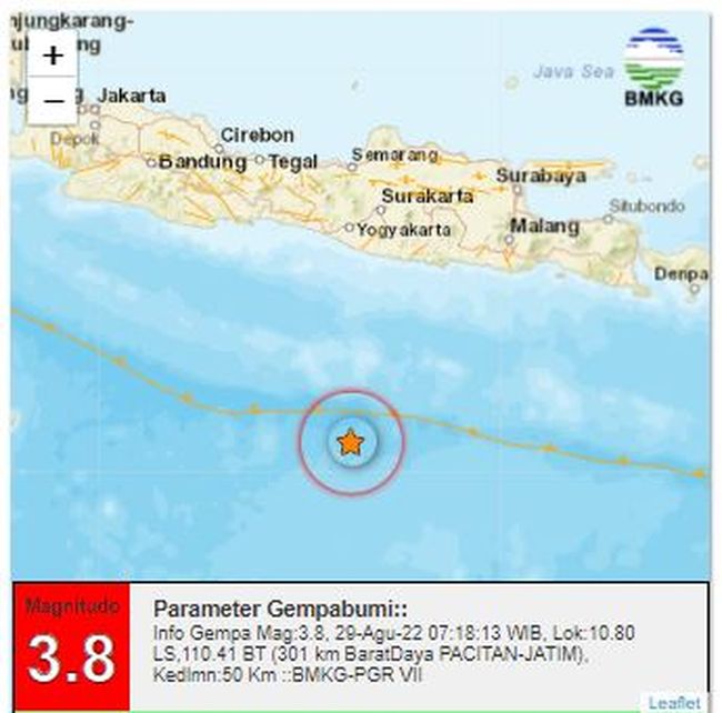 Ada 6 gempa terjadi di Jawa Timur hari ini, Senin (29/8/2022). Gempa terjadi di Lumajang dan Pacitan.