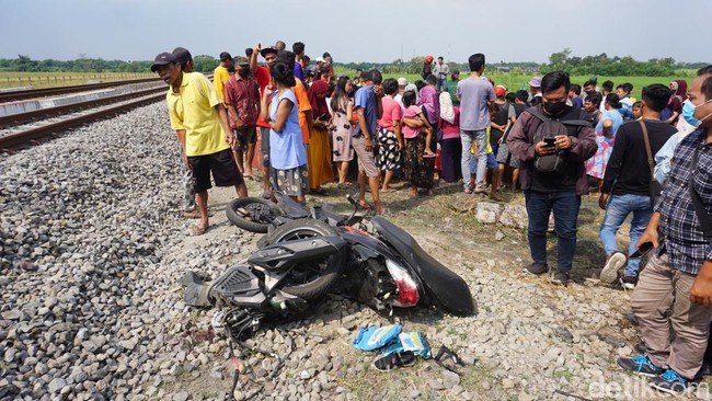 "Korban menjemput anaknya sekolah. Perjalanan pulang. Karena tak memperhatikan KA lewat, sehingga tertabrak KA. Ya, perlintasan tanpa palang pintu," kata Kasat Lantas Polres Mojokerto AKP Bayu Agustyan di lokasi.