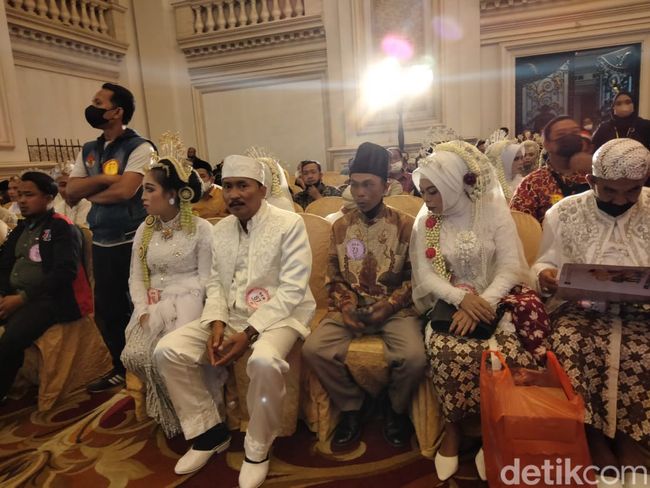 Semburat senyum terpancar dari wajah 120 pasangan di Surabaya yang hari ini melangsungkan pernikahan massal. Pernikahan ini digelar di Empire Palace lantai 10, Surabaya. Sebelumnya, 120 pasangan tersebut sudah menikah secara agama atau menikah siri. Kini, mereka melakukan isbat nikah massal.