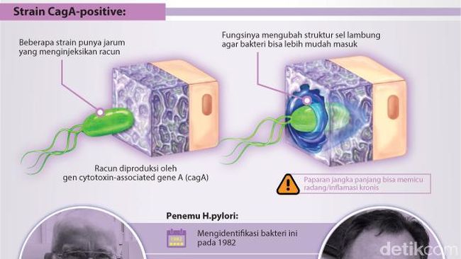"Kenapa bakteri ini bisa mengakibatkan kanker lambung? Karena ini mempunyai kemampuan untuk melawan keasaman lambung dengan urease, suatu enzim yang dimiliki H. pylori. Maka kolonisasi bisa hidup lama, akhirnya muncul inflamasi dan terjadi pembengkakan atau suatu perubahan di dalam lambung. Lama kelamaan lambung terjadi inflamasi dan capek, akhirnya sel lambung mengecil atau hilang, dan digantikan sel kanker," kata Prof Miftah kepada detikJatim, Rabu (31/8/2022).