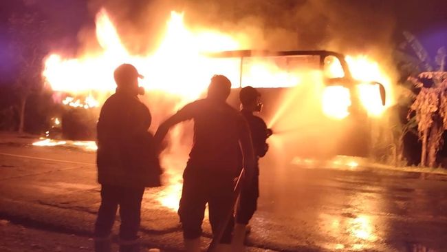 "Busnya habis total. Tinggal rangkanya saja. Sekarang akan sudah ditarik ke polsek setempat," tandasnya.