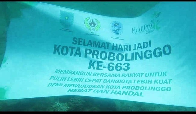 Ratusan penyelam menggelar pengibaran bendera merah putih dan panji Pemerintah Kota Probolinggo di dasar laut Pulau Gili Ketapang. Kegiatan ini digelar dalam rangka Hari Jadi ke-663 Kota Probolinggo.