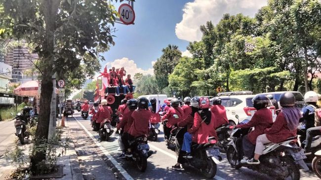 Sebelumnya, ada ratusan hingga ribuan buruh memenuhi kawasan Frontage Jalan Ahmad Yani Surabaya sisi selatan. Mereka mengendarai sejumlah sepeda motor, 3 bus, hingga sebuah mobil komando pikap bak terbuka.