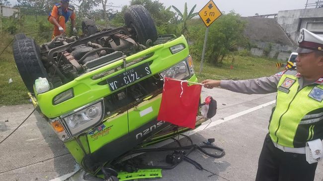 "Pecah ban itu mengakibatkan pengemudi tidak bisa menguasai kendaraan dan terbalik kemudian berhenti di bahu jalan kendaraan posisi akhir terbalik," ujar Kasat PJR Polda Jatim AKBP Dwi Sumrahadi saat dikonfirmasi melalui telpon, Selasa (6/9/2022).