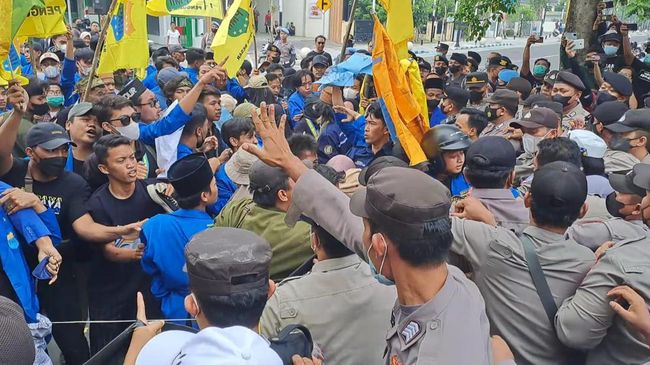 Unjuk rasa puluhan mahasiswa menolak kenaikan harga BBM di depan kantor DPRD Jombang diwarnai kericuhan. Massa yang memaksa masuk ke kantor dewan sempat saling dorong dengan polisi. Satu mahasiswa diamankan petugas.