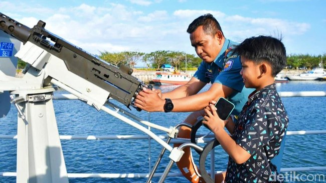 "Tentu ini pengalaman berharga bagi Farel mengenal kapal perang. Dia mengaku tidak pernah lihat kapal perang," ujarnya kepada detikJatim.