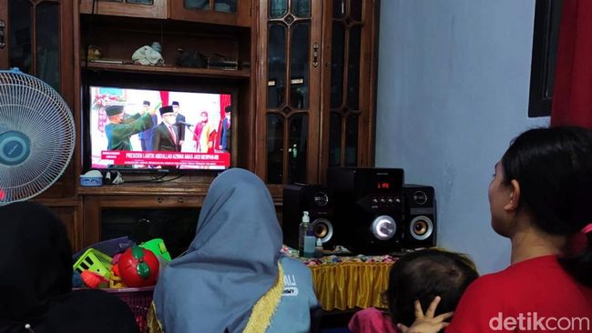 Sejumlah warga di Banyuwangi nobar tayangan pelantikan itu dengan duduk bersama di depan televisi. Mereka menyaksikan detik-detik pelantikan itu.