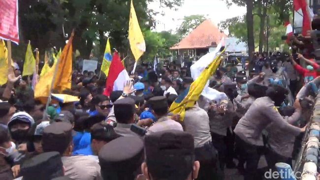 Massa yang berasal dari sejumlah organisasi mahasiswa tersebut memadati jalur utama di depan gedung DPRD pada Rabu (7/9/2022) siang. Para pendemo juga membentangkan sejumlah spanduk dan poster yang berisi protes dan sindiran kepada pemerintah.