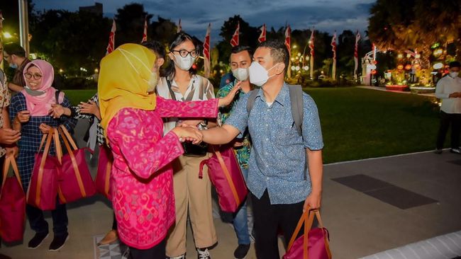 Mereka secara khusus diundang Gubernur Khofifah di Gedung Negara Grahadi, Surabaya, pada Kamis (8/9) malam untuk menikmati pemandangan Sungai Kalimas di malam hari di belakang Grahadi.