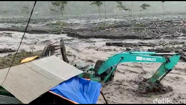 "Banjir lahar Gunung Semeru merendam 2 alat berat di sungai sekitar pukul 06.00 WIB. Korban jiwa gak ada hanya alat berat saja yang terendam," ujar salah seorang warga Abdul Rahman kepada detikJatim, Minggu (11/9/2022).