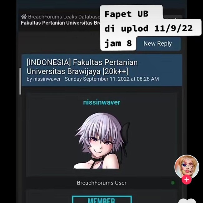 Hacker Menyebar data yang disebut milik mahasiswa S1 dan alumni Universitas Brawijaya (UB) angkatan 2020 di medsos. UB sedang melakukan penyelidikan terkait dugaan peretasan ini.