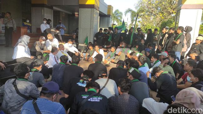 Ratusan aktivis mahasiswa Himpunan Mahasiswa Islam (HMI) yang sempat memblokade Jalan Raya Bypass Juanda dan bakar-bakar ban bekas dipersilakan masuk ke halaman Kantor Wilayah Direktorat Jenderal Pajak (DJP) Jatim II Jalan Raya Juanda. Mereka ditemui para pejabat Kanwil DJP Jatim II.