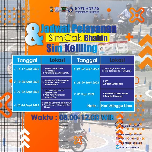 Berikut jadwal SIM keliling di Surabaya untuk September 2022: