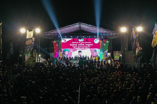 Santri Dukung Ganjar (SDG) Jawa Timur menggelar 'Gebyar Selawat Damai dan Doa Bersama untuk Negeri' di Pondok Pesantren Metal Muslim Al Hidayah, Rejoso, Kabupaten Pasuruan, Sabtu (17/9). Kegiatan ini merupakan bentuk dukungan dari santri hingga ulama di Pasuruan untuk Ganjar Pranowo agar menjadi Presiden 2024.