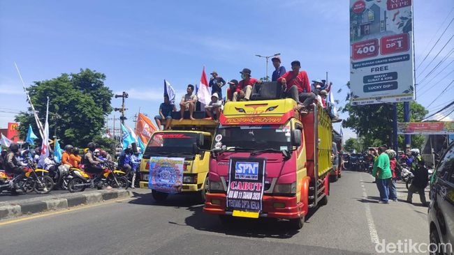 Rombongan buruh pengunjuk rasa dari 3 daerah, baik Mojokerto, Pasuruan, maupun Sidoarjo bertolak ke Surabaya. Mereka akan bergabung dengan massa buruh lainnya dan memusatkan aksi di Kota Pahlawan. Iring-iringan ini berdampak pada kelancaran lalu lintas.