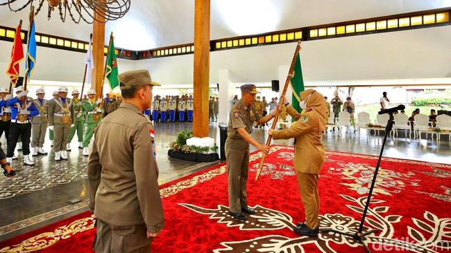 Upacara penerimaan tersebut melibatkan personil Satpol PP, Linmas dan Pemadam Kebakaran dan Penyelamatan.