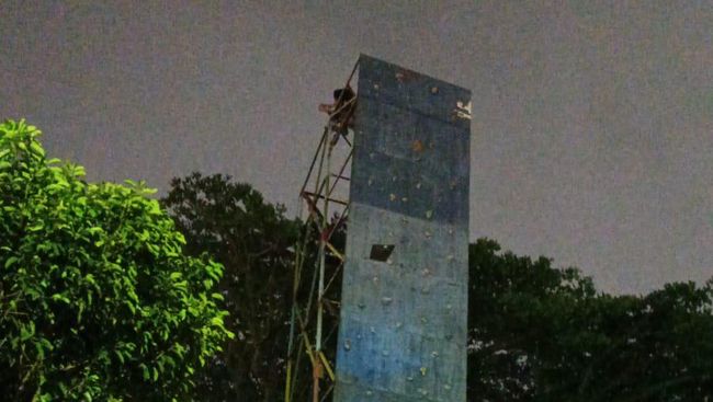 Seorang pemuda tiba-tiba naik ke panjat dinding atau wall climbing saat hari sudah gelap. Warga Jalan Surabaya, Kecamatan Lowokwaru, Malang, mengira pemuda tersebut bunuh diri.