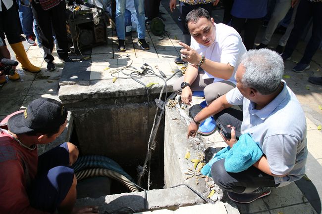 "Biar nggak terlalu numpuk di rumah pompa dekat Gedung Negara Grahadi atau Kenari. Maka dari itu, kami juga membuat crossing di Jalan Panglima Sudirman untuk ditujukan ke sungai Kalimas," kata Dwi.