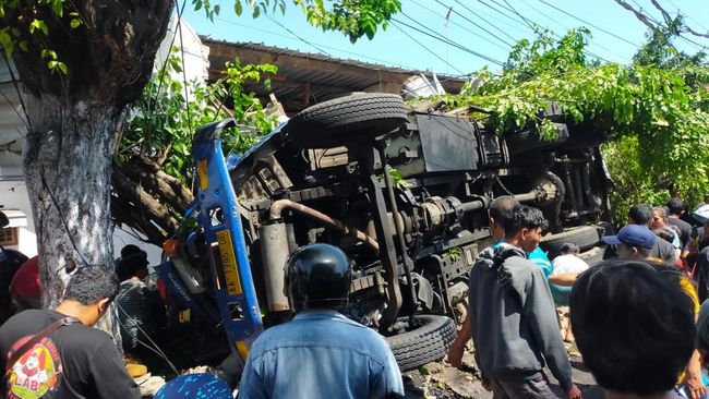Kecelakaan maut terjadi di lampu merah pertigaan Sukowidi, Banyuwangi. Truk tangki diduga rem blong terguling menabrak dua pemotor dan sebuah warung di pinggir jalan.