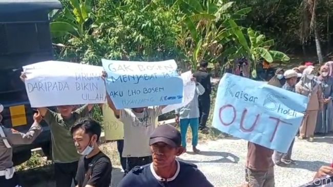 Pantauan detikJatim, warga mendatangi balai desa setempat dengan membawa poster yang berisi tuntutan mereka. Selain itu, warga juga membagikan selebaran yang berkaitan dengan aksinya.