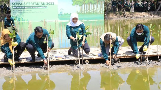 "Dari sangat banyak referensi kita bisa mendapatkan informasi bahwa produksi oksigen dari mangrove ini 5 kali lipat lebih tinggi dari pada tanaman yang ada di daratan. Maka sesungguhnya yang akan bisa mendapatkan berkah oksigennya bukan hanya warga Surabaya, bukan hanya Jatim, bukan hanya Indonesia tapi dunia," kata Khofifah saat menghadiri Peringatan HSN Tahun 2022 di Kebun Mangrove Wonorejo, Rungkut, Surabaya, Senin (26/9/2022).