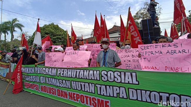 Berdasarkan pantauan detikJatim, ratusan orang itu datang ke Perhutani Blitar yang ada di Jalan Sudanco Supriadi, Kota Blitar. Sejumlah banner hingga poster berisikan tuntutan dibentangkan selama aksi damai itu.