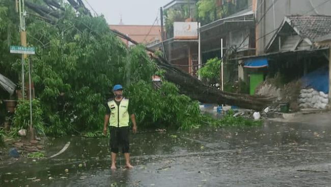 Hujan disertai angin kencang di awal musim hujan menumbangkan 3 pohon besar di 3 lokasi berbeda di Kabupaten Mojokerto. Akibat pohon tumbang, sejumlah instalasi listrik dan bangunan bengkel sepeda motor rusak.