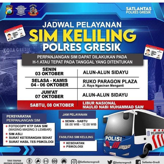 Catat jamnya, ya! Mobil SIM keliling melayani perpanjangan SIM A maupun SIM C dari pukul 08.00 WIB hingga pukul 12.00 WIB.