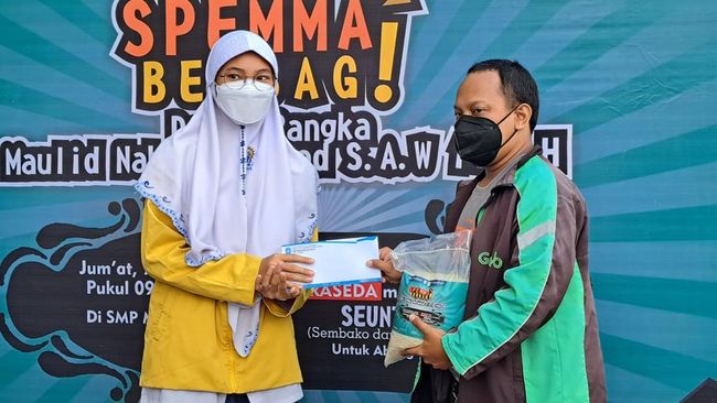 Sejumlah tradisi unik biasanya digelar menyambut Maulid Nabi Muhammad SAW. Maulid nabi juga bisa dimeriahkan dengan berbagi kepada sesama. Seperti yang dilakukan siswa SMP Muhammadiyah 5 Surabaya yang berbagi sembako dan uang tunai kepada para pengemudi ojek online (ojol).