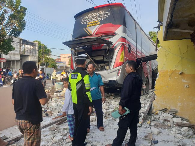 Bus malam Madu Kismo jurusan Denpasar-Semarang menabrak 4 rumah di ruas Jalan Pantura Desa Kemantren, Kecamatan Paciran, Lamongan. Berikut kronologi kejadiannya.