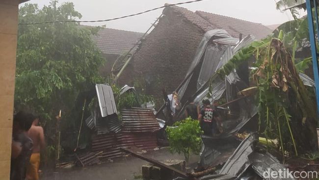 Ada enam kecamatan di Sidoarjo yang terdampak hujan deras disertai angin kencang sore tadi. Puluhan rumah rusak. Pohon dan tiang listrik juga roboh.
