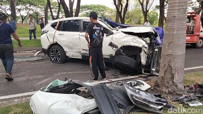 Akibatnya, lanjut Arif, Mini Cooper tertabrak Honda Honda CR-V. Tabrakan itu kemudian membuat mobil yang dikendarai Tino hilang kendali dan menabrak tiang penerangan jalan umum (PJU) dan 3 pohon palm.
