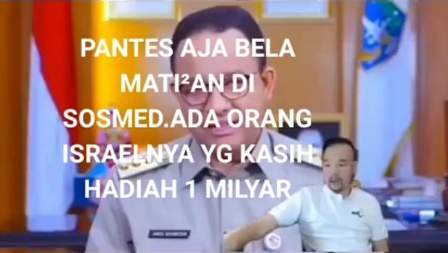Sebuah video viral di grup WhatsApp. Video tersebut berisi ajakan mendukung Anies Baswedan Presiden 2024. Seorang pria mengatakan, siapapun yang mendukung Anies Baswedan Presiden Indonesia 2024 akan mendapat imbalan Rp 1 Miliar.