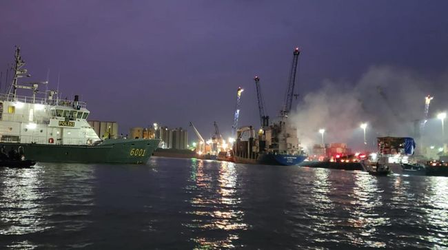 Kapal Motor (KM) Lit Enterprise terbakar di Dermaga Jamrud Selatan, Tanjung Perak, Surabaya. Kebakran kapal bermuatan kontainer atau peti kemas itu dapat segera dipadamkan petugas pemadam gabungan.