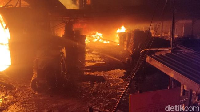 Kebakaran yang terjadi sekitar pukul 17.30 WIB belum berhasil dipadamkan hingga pukul 20.30 WIB. Tampak di kegelapan, bangunan pabrik terlihat jadi arang. Sementara petugas pemadam masih berjibaku. Mobil-mobil pemadam hilir mudik mengisi air.